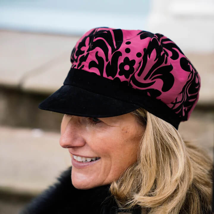The brim and side panels are finished in luxurious velour, featuring a rich paisley design in deep, jewel-like tones. This adds depth, texture and a touch of vintage-inspired elegance, while the soft, plush feel gives the cap a premium, tactile quality.